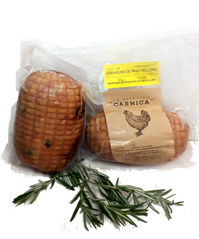 Granadina de pavo navideño Celebra las fiestas navideñas y fin de año con nuestros productos navideños por temporada limitada. Granadina de pavo, con la mezcla de carnes de pavo seleccionadas, ciruelas, almendra y huevos de codorniz,...